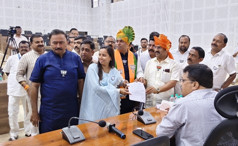 अर्ज दाखल करताना मंत्री आदिती तटकरे, भाजपचे आमदार प्रशांत ठाकूर, आमदार महेश बालदी, माजी आमदार अनिकेत तटकरे, शिवसेना नेत्या मानसी दळवी, विकास गोगावले, रसिका केणे, दिलीप भोईर, चंद्रकांत कळंबे, आस्वाद पाटील, चित्रा पाटील, सुधाकर घारे, अॅड. प्रवीण ठाकूर, अनंत गोंधळी यांच्यासह महायुतीचे अनेक पदाधिकारी आणि कार्यकर्ते उपस्थित होते.