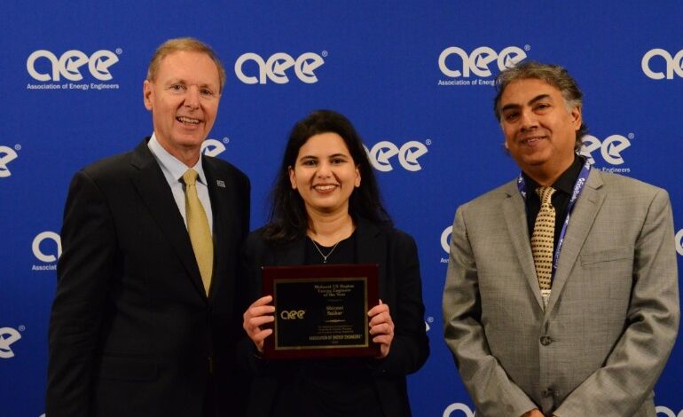 ऊर्जा कार्यक्षमतेसाठी केलेल्या सुधारणा, अत्याधुनिक तंत्रज्ञानाचा प्रभावी वापर आणि शाश्वत ऊर्जा उपक्रम यांच्या प्रशंसापूर्ण कार्यासाठी तिचा ‘एनर्जी इंजिनियर ऑफ द इयर 2025 – मिडवेस्ट यूएस’ या मानाच्या पुरस्काराने गौरव करण्यात आला. हा पुरस्कार असोशिएशन ऑफ एनर्जी इंजिनियर्स (AEE) तर्फे १७ सप्टेंबर रोजी अटलांटामधील जॉर्जिया वर्ल्ड काँग्रेस सेंटर येथे आयोजित सोहळ्यात प्रदान करण्यात आला. यासोबतच, ऊर्जा व शाश्वत प्रयोगशाळा व्यवस्थापन क्षेत्रात उदयोन्मुख नेतृत्व म्हणून तिची निवड होऊन इंटरनॅशनल इन्स्टिट्यूट फॉर सस्टेनेबल लॅबोरेटरीज संस्थेने तिला ‘फिल विर्डझेक इमर्जिंग लीडर इन नॅशनल लॅब्स 2025’ हा अत्यंत प्रतिष्ठेचा दुसरा पुरस्कारही दिला आहे.