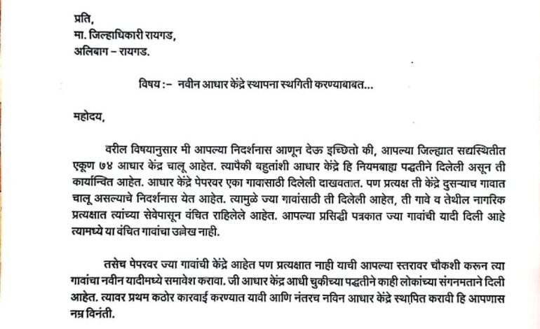 रायगडमध्ये नवीन आधार केंद्रांची घोषणा; मंजूर केंद्रे दुसऱ्याच ठिकाणी कार्यरत असल्याने पारदर्शकतेवर प्रश्न